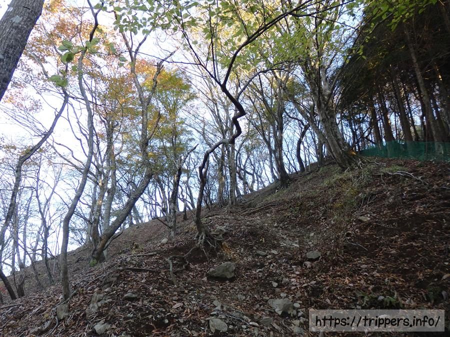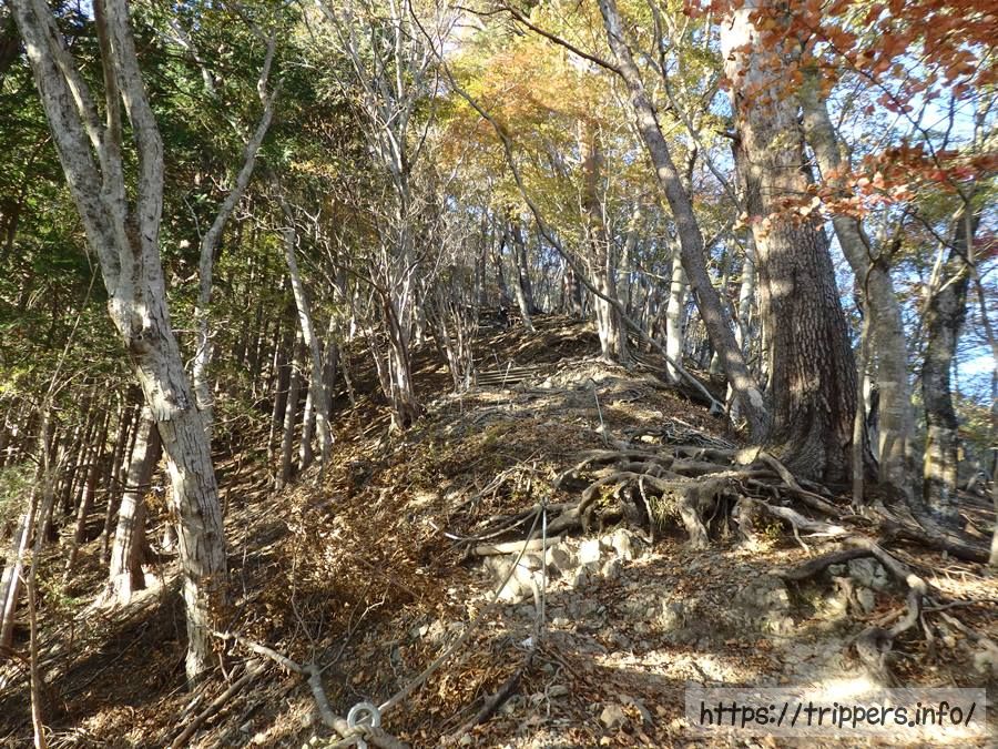 少し休憩したら鍋割山へ向かいます。ここから滑りやすい登山道になってきました。鍋割山までは誰ともすれ違わない登山になります。