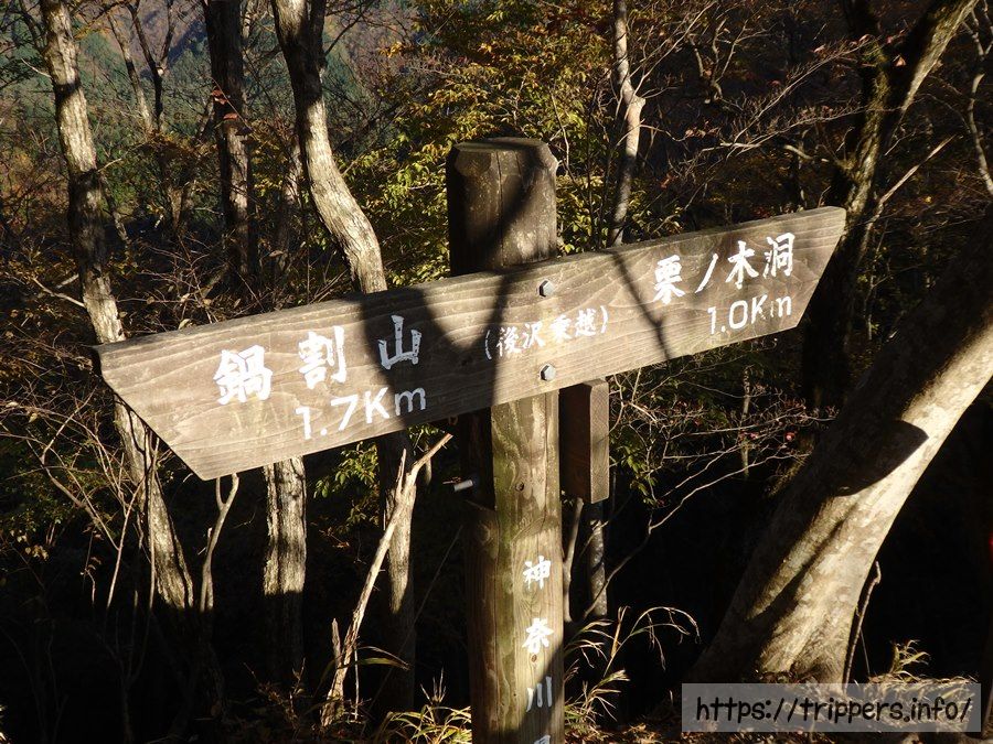 後沢乗越に到着です。ここから左へ下っていけば大倉バス停へのルート。まっすぐ栗ノ木洞の方へ行けば寄バス停へのルートです。ここでの選択がすぐに後悔する事になります。
