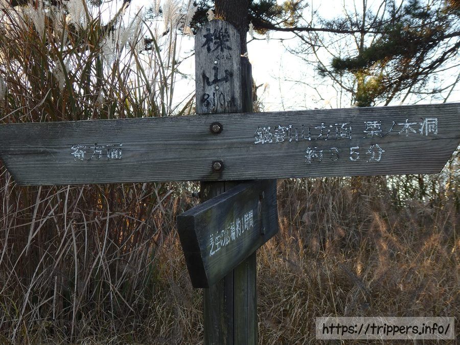少し歩けば、櫟山です。名前的にここは山頂っぽいけれど、ここも山頂っぽさは皆無です。夕陽でススキが輝いて綺麗な場所でした。