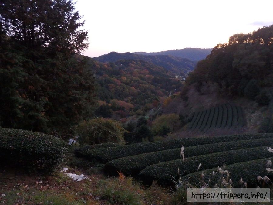 何とか日が沈み切る前に、茶畑まで来れました。人里を通過し、寄バス停で出発ぎりぎりのバスに乗って帰宅しました。寄バス停はバスの本数が少ないため、バスに間に合ってよかったです。