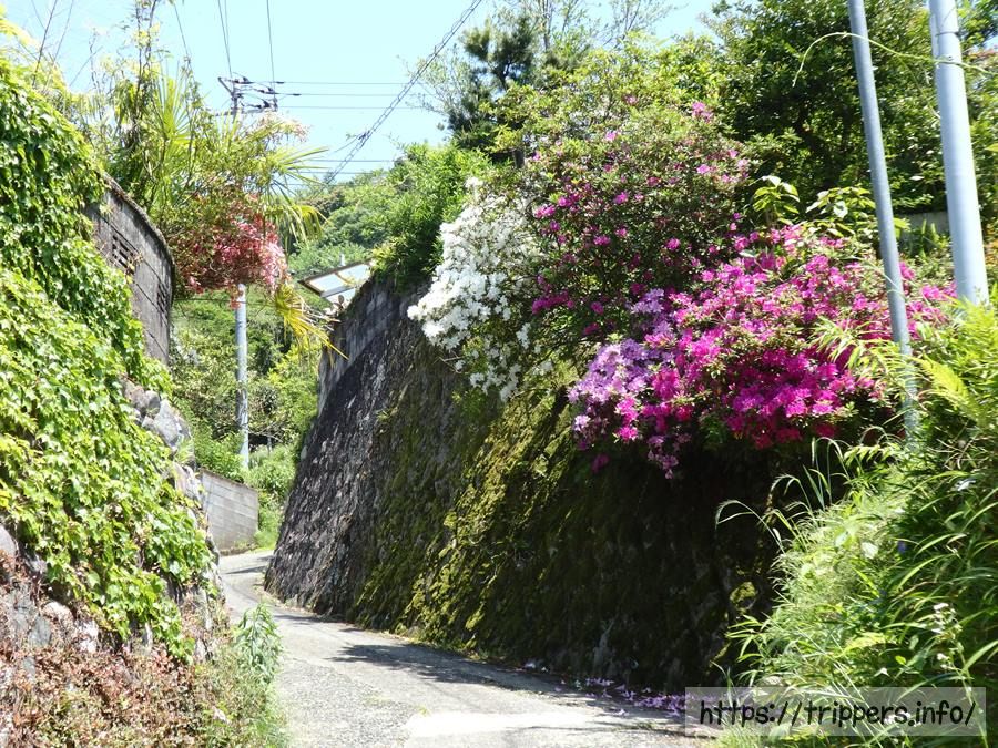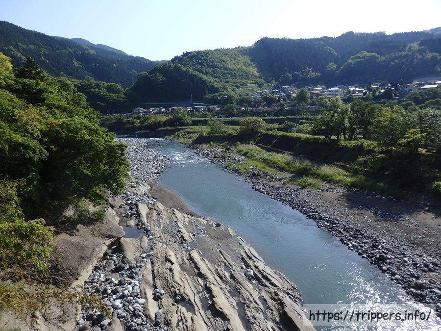 木々の中を抜け、無事に下山しました。谷峨駅までもう少しです。