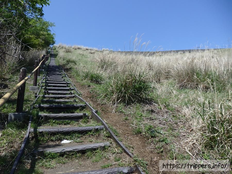 大野山での一番の難所はこの稜線へ続く階段です。1つ1つの段差は低いですが、冬は怠惰し、コタツ籠もりしていた私にはきついかもしれません。