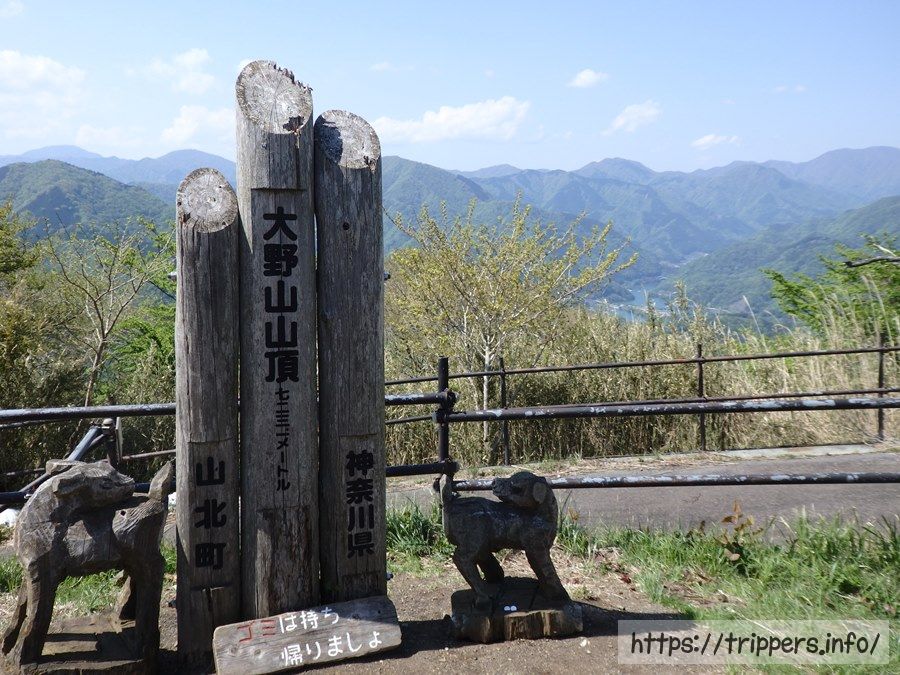 大野山は車で行けば、駐車場から5分の歩きで山頂へ行ける便利な山です。山頂は広場になっており、家族連れでピクニックもできます。