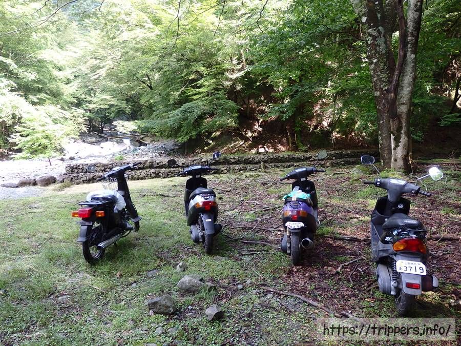不法投棄されたバイクでしょうか。ナンバープレートがないものもあります。ここに捨てに来るメリットは分からないので、謎は迷宮入りです。