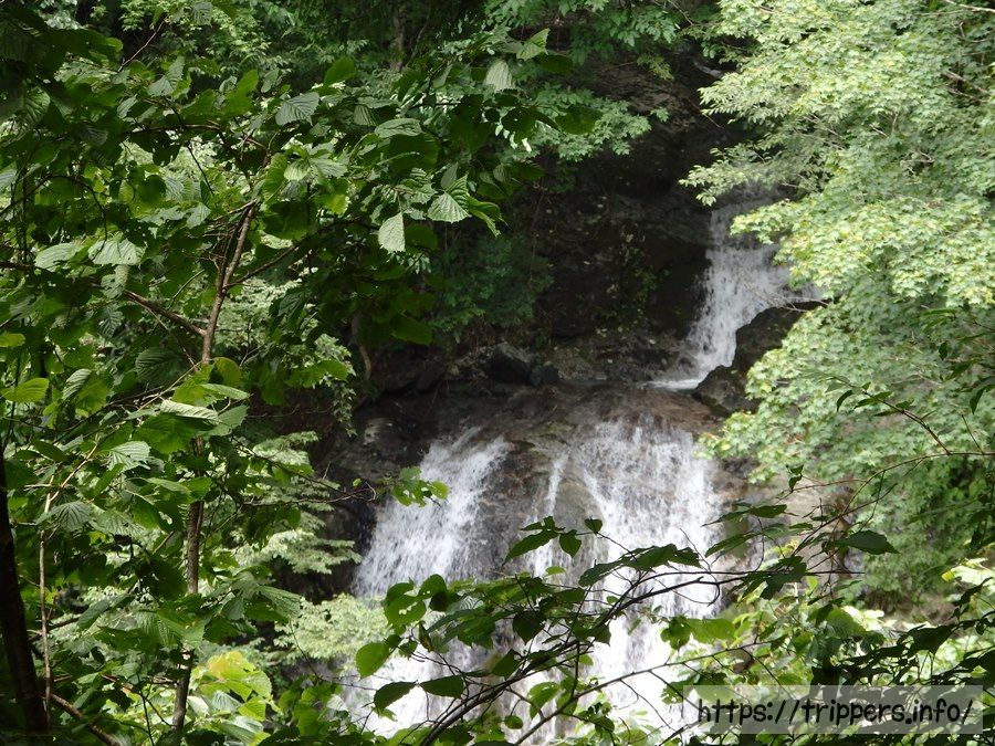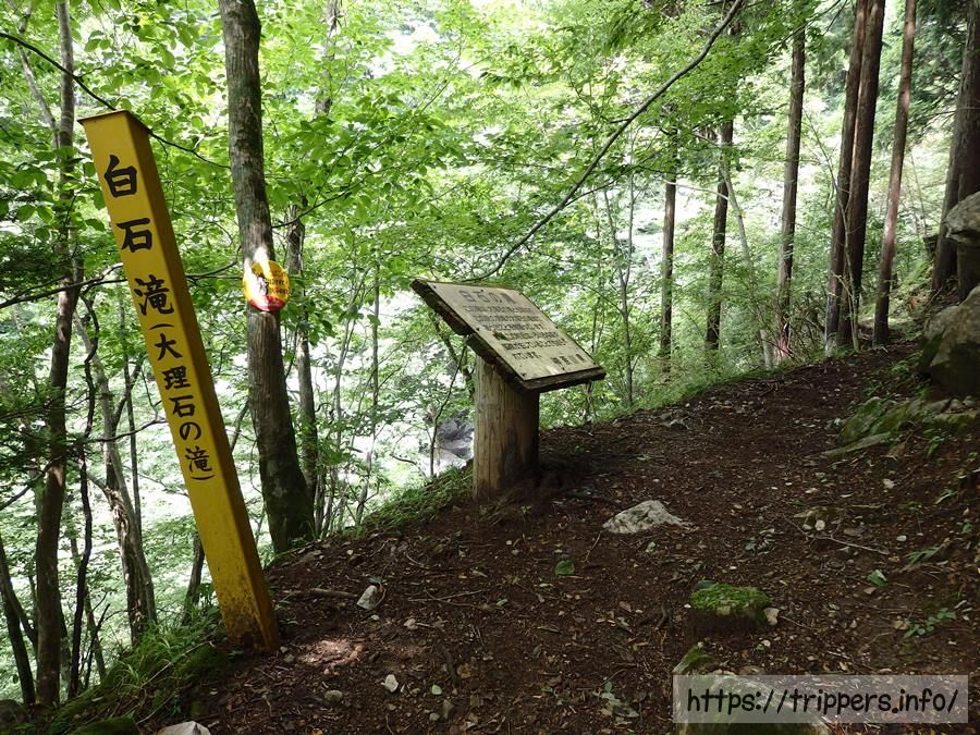 生い茂った葉のせいで、白石滝(大理石の滝)の姿は少ししか見えません。
