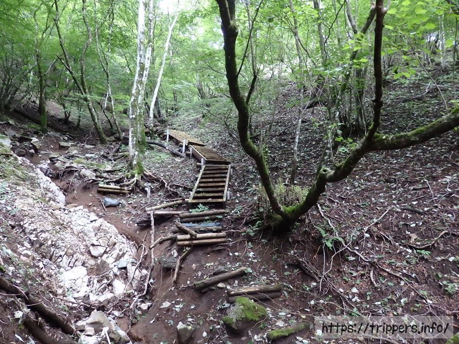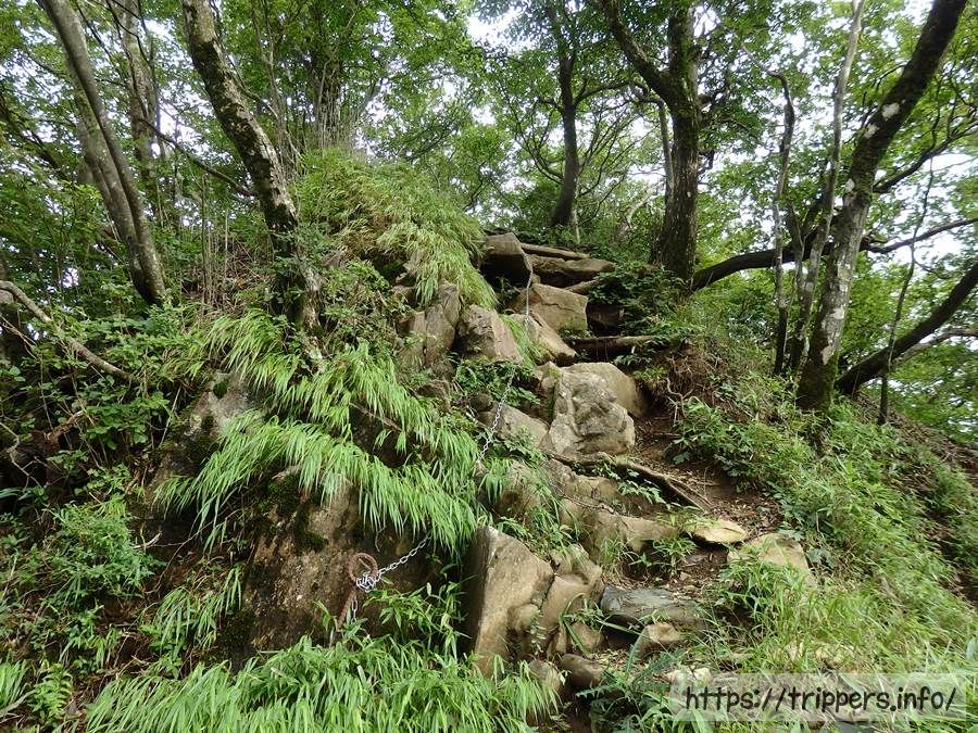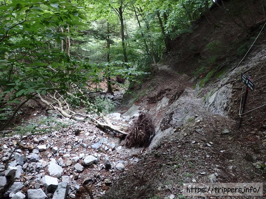 ロープ場がありますが、急勾配の巻き道があるので、ロープを使わず通過できます。