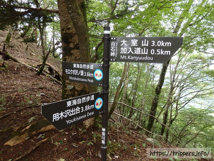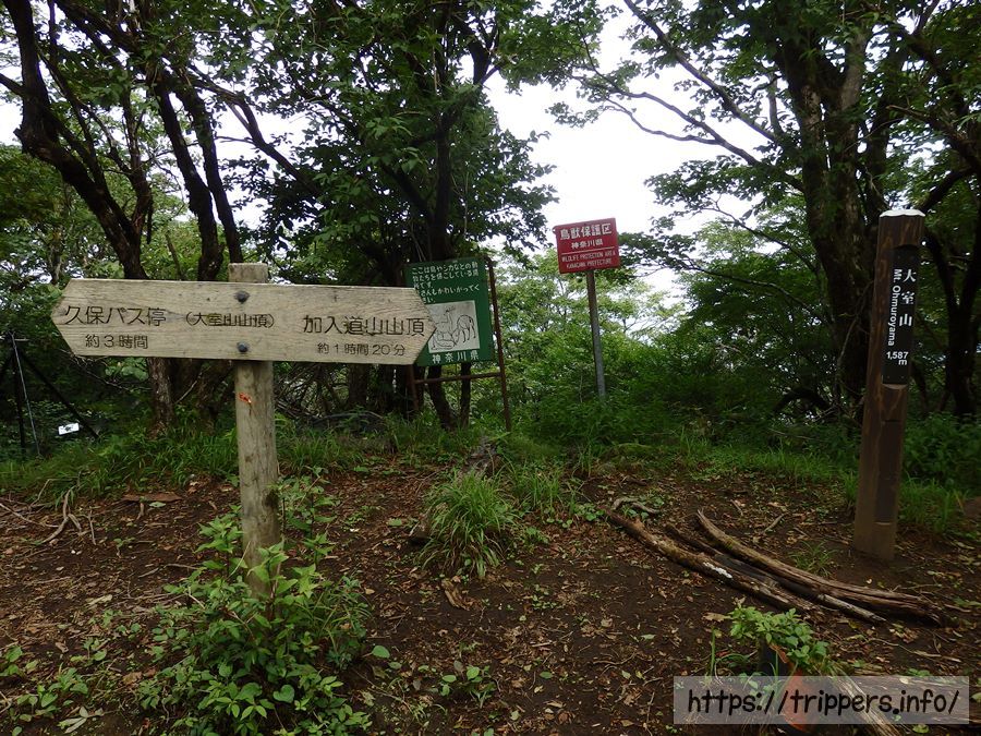 用木沢出合です。ここから右へ行けば大室山、左へ行けば加入道山です。