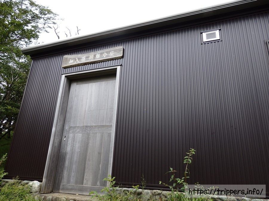 小雨が降っていたので、加入道避難小屋の中で昼食です。