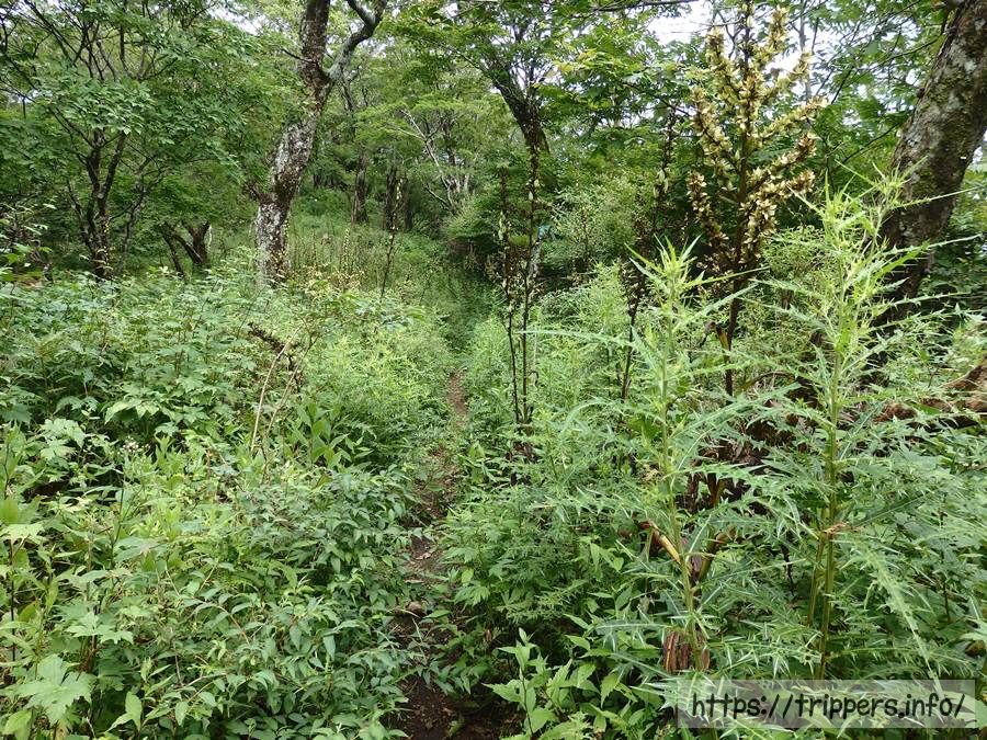 アザミのトゲトゲした葉っぱだらけで、藪漕ぎ状態なのです。葉っぱが足に当たる度に、長ズボンで肌をガードしていても痛いです。