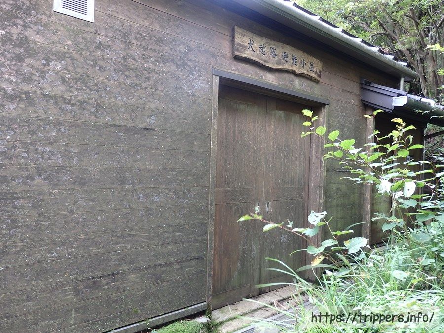 犬越路避難小屋でトイレとおやつ休憩です。標準タイムより早く進めており、バスにはこのままのペースで下山すれば間に合いそうです。