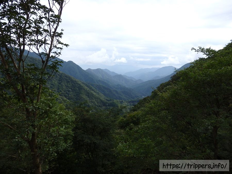 山の景色はこれが最後になり、ずっと森林の中の枯れた沢沿いをメインに歩いていきます。