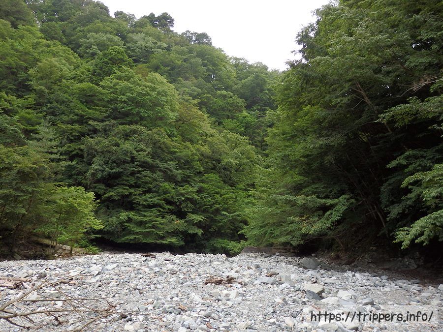 キャンプ場を通過して用木沢出合へ向かいます。夏休み期間だけあって、キャンプ場は満員御礼で数百人程のキャンプ客を下山時に見かける事となります。
