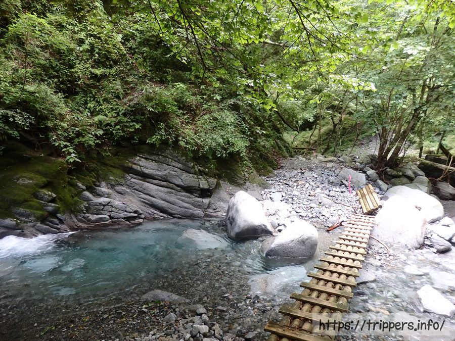 4つ目の木橋は役に立ちません。流れが強かったり、岩が滑ったりするので、手こずります。用木沢出合から大室山へ行くより難易度は高いです。