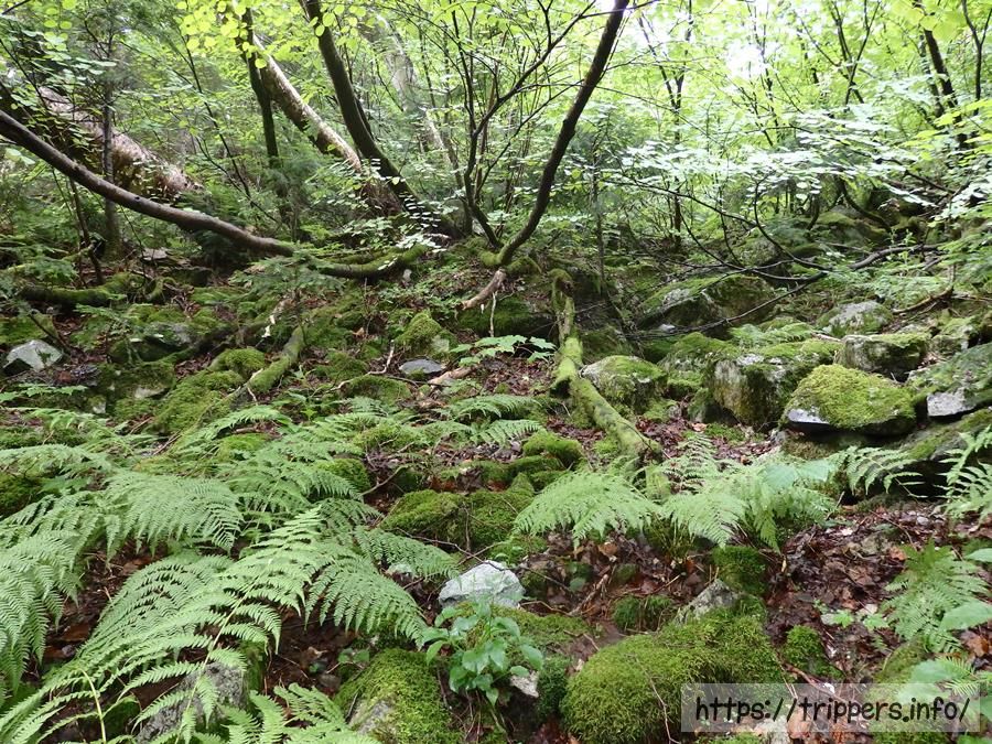 登山道の緑が雨で生き生きしています。