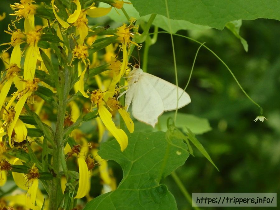 明神の近くで白い蛾を見つけました。見た目で「蝶」と「蛾」を何となく区別してましたが、ネットで調べてみると、蝶は昼行性で胴体が細い。蛾が夜行性で胴体が太いです。ただ例外がいっぱいあるようで、何が何だかさっぱりです。