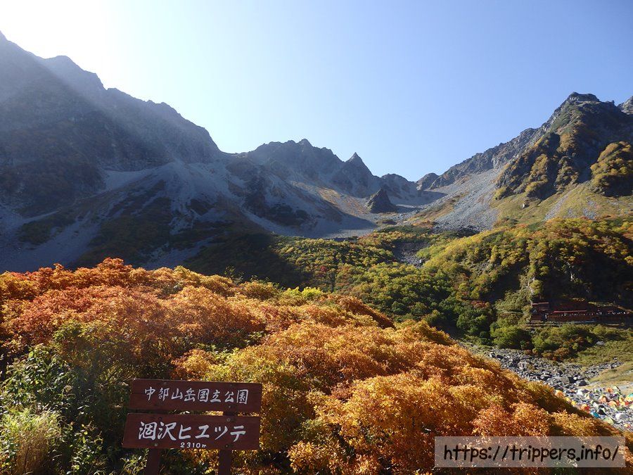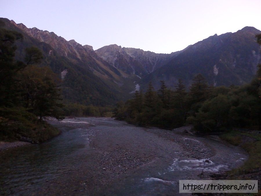 早朝、上高地へ到着しました。10月という事もあって、結構肌寒いです。重たいザックを背負って歩けばすぐに体が熱くなるかと思いきや、寒い状態の気温です。