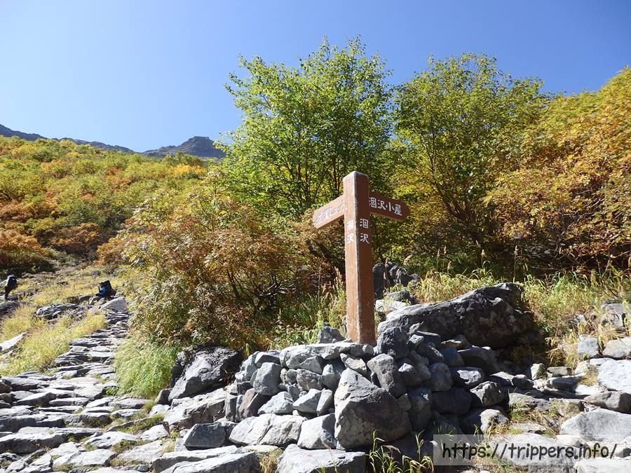 涸沢ヒュッテと涸沢小屋への分岐点です。どっちに行っても大丈夫ですが、今日の気分としては... 涸沢小屋の方へ向かいます。