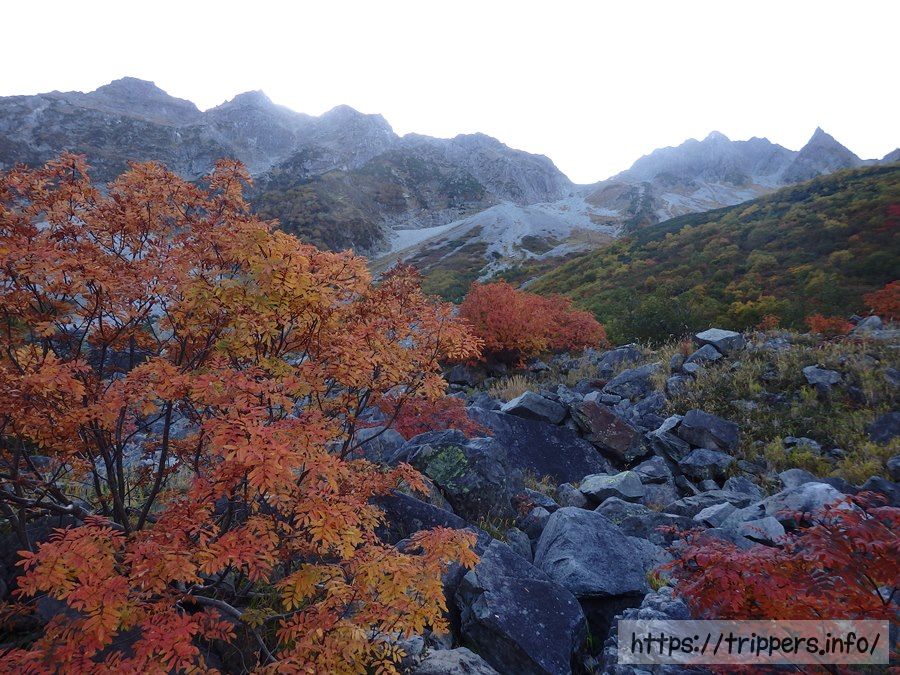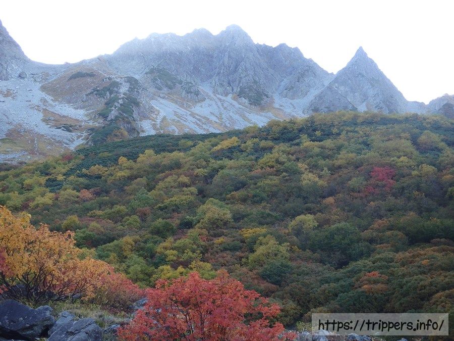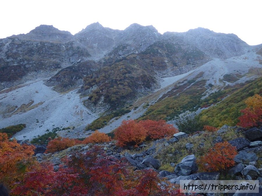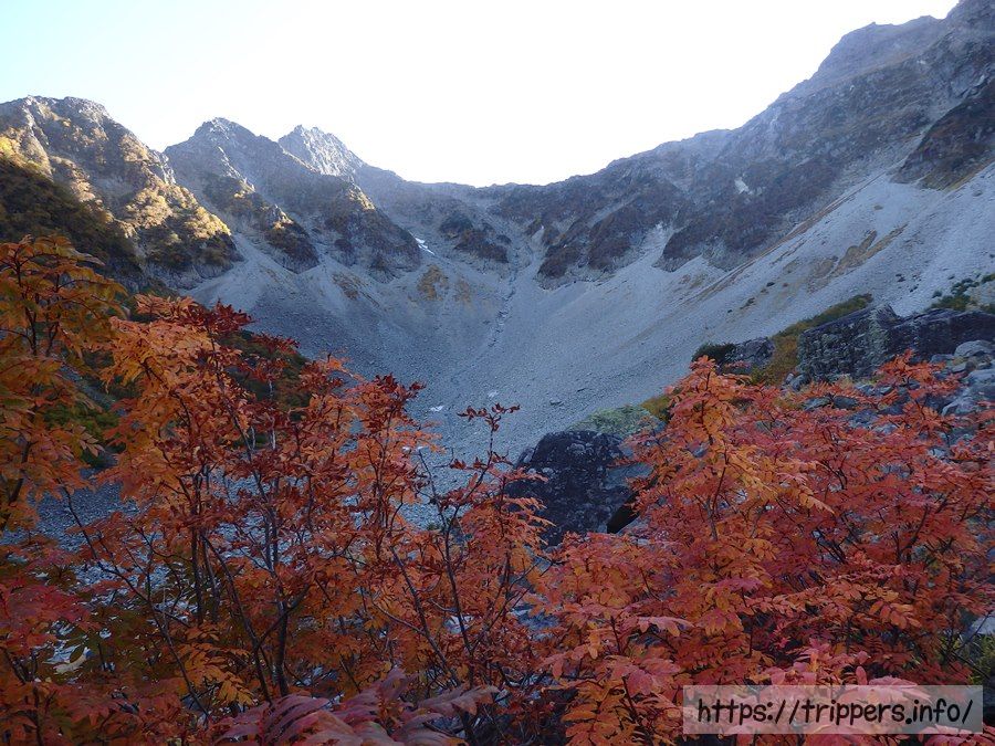 人によっては北穂高岳の下にある小さなカール地形も入れた、こっちの構図の方が好みかもしれないですね。
