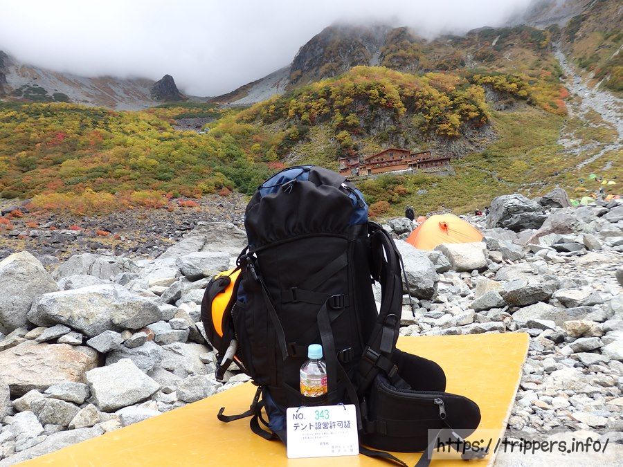 テントを片付けて、ザックにしまいます。持参した食料を食べた分、荷物は軽くなりました。コンパネとテント設営許可証を返却したら、下山を開始します。