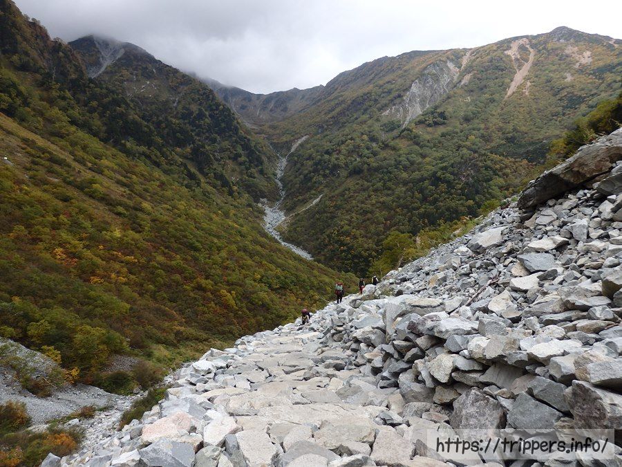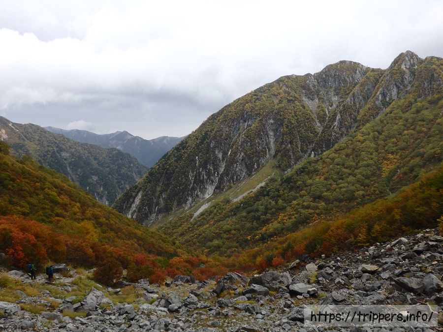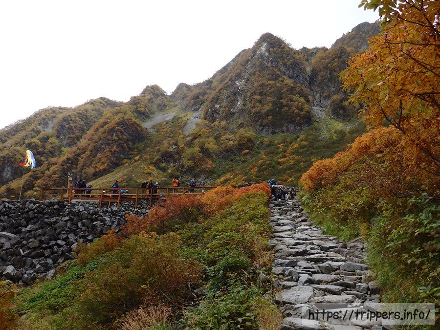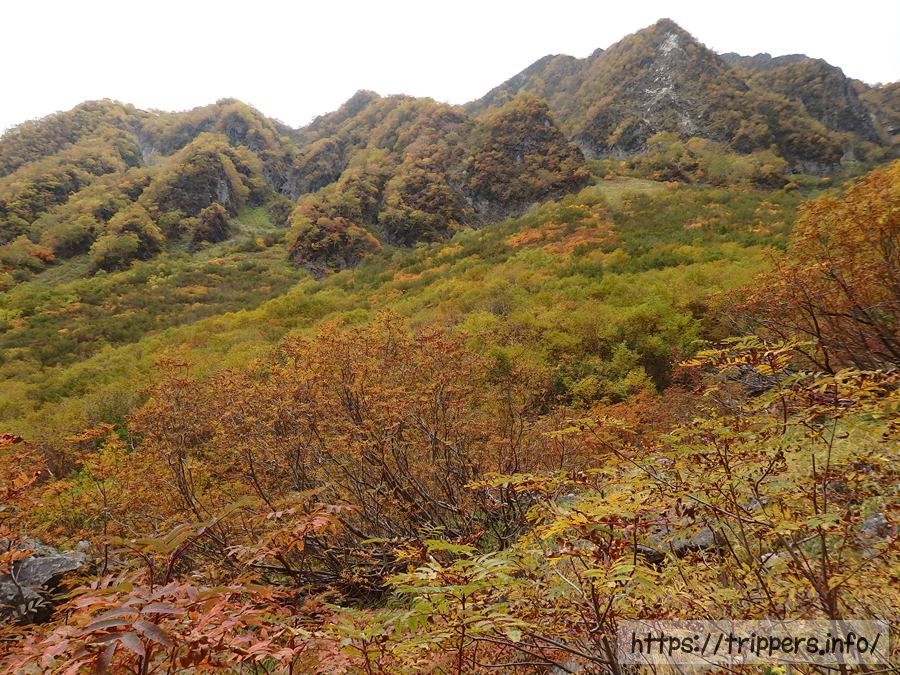 初日に歩いた時よりも紅葉が色づいています。下山しながら、今回の登山で思い出に残った景色を考えます。