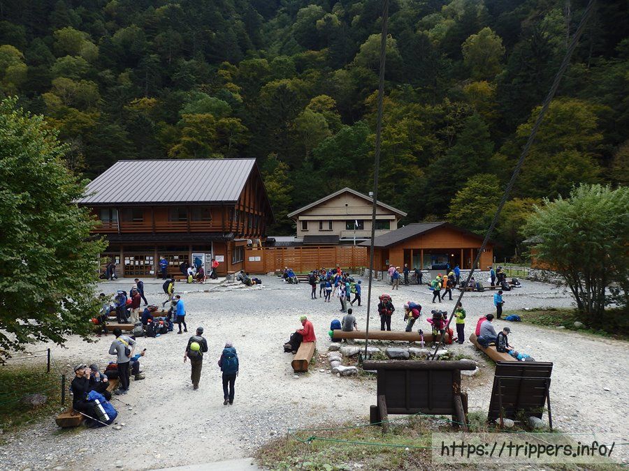 横尾に到着しました。小梨平の食堂で昼食にする予定でしたが、ゆっくり歩いていると時間的に営業時間が終わってしまいそうです。徳沢園みちくさ食堂で昼食にする事に決めました。