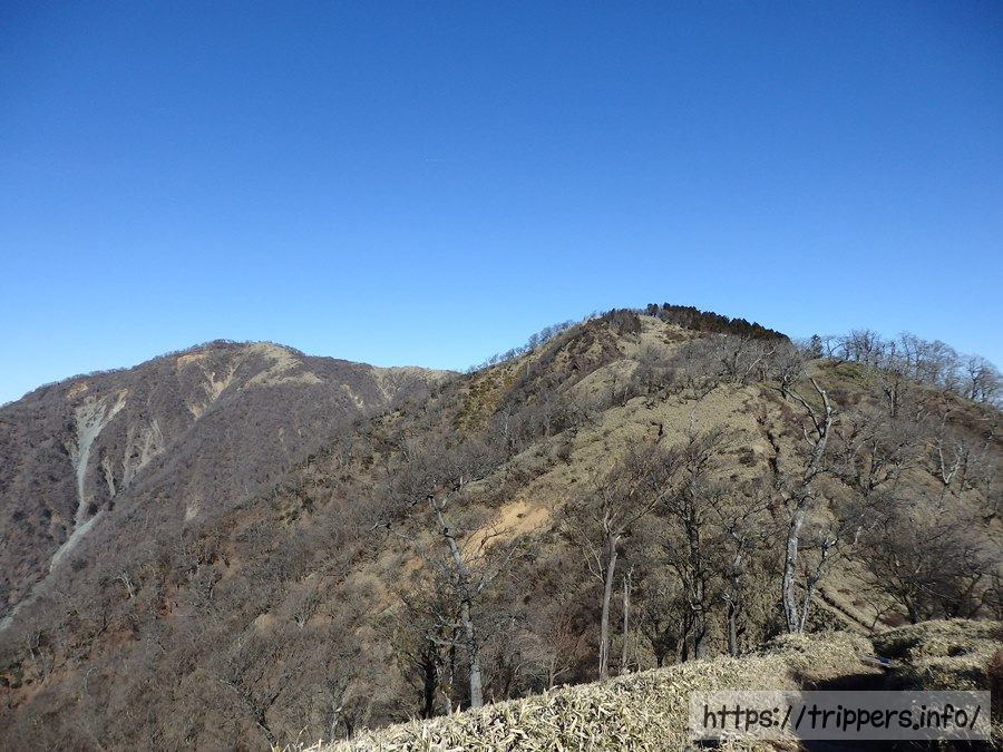 丹沢山に到着しました。ここで今日のお昼ご飯として持ってきたおかずを平らげます。残りのおにぎりは帰りの道中に食べることにします。