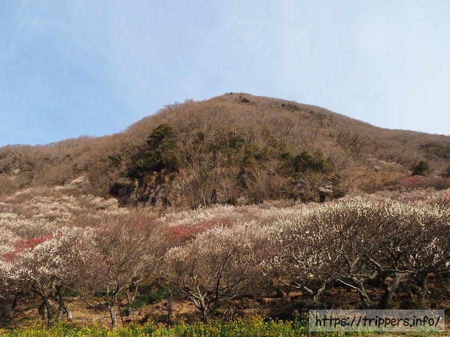 登山道を登っていくと、幕山のポスターで良く見かける場所にたどり着きました。ここより先は梅の景色はなくなります。