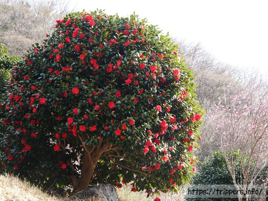 幕山公園には約4000本もの梅がありますが、椿も同時に見頃となっています。ロウバイは僅かにある程度でした。