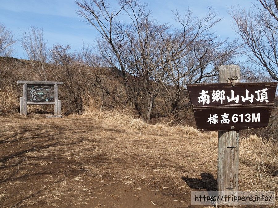 標高613mの南郷山山頂へ到着しました。小田原市の街並みや曽我丘陵の展望がありました。