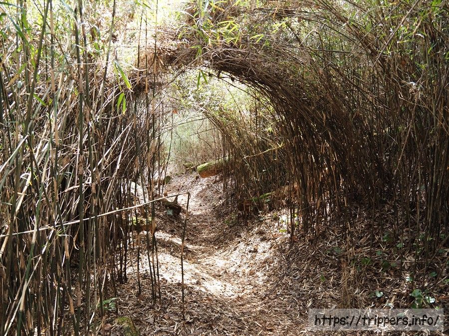 身長よりも高い竹藪の中を通り過ぎると、南郷山へはもうすぐです。素人目でも分かるような獣道がありました。