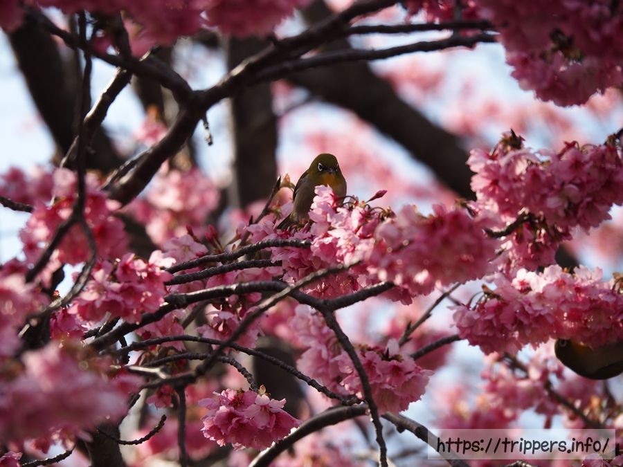 メジロが至る所で鳴き声を上げており、野鳥カメラマンの熱視線を浴びていました。野鳥の撮影を本格的にするなら、望遠レンズが欲しくなってしまいます。植物なら接写レンズ、空撮ならドローン。泥沼にはまるのは、避けたいところです。