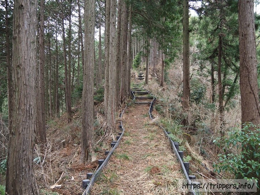 登山道は整備されています。もう少し暖かくなる時期になったらヤマビルがうようよ出没する山域です。特にここら辺はヒルの数が多いようです。ヤマビルの時期に歩くのか、狩猟期間に歩くのか、どちらがお好きですか。