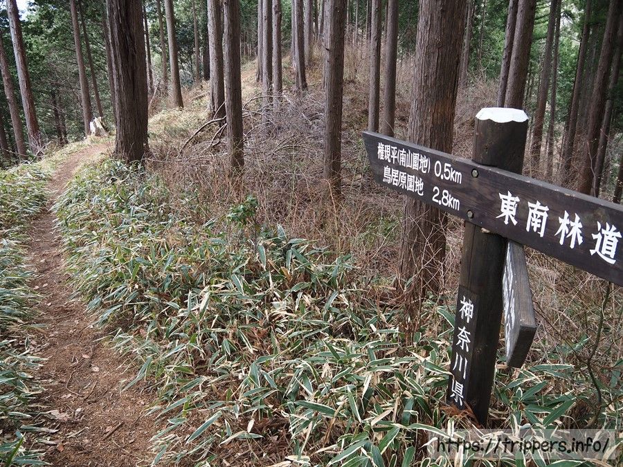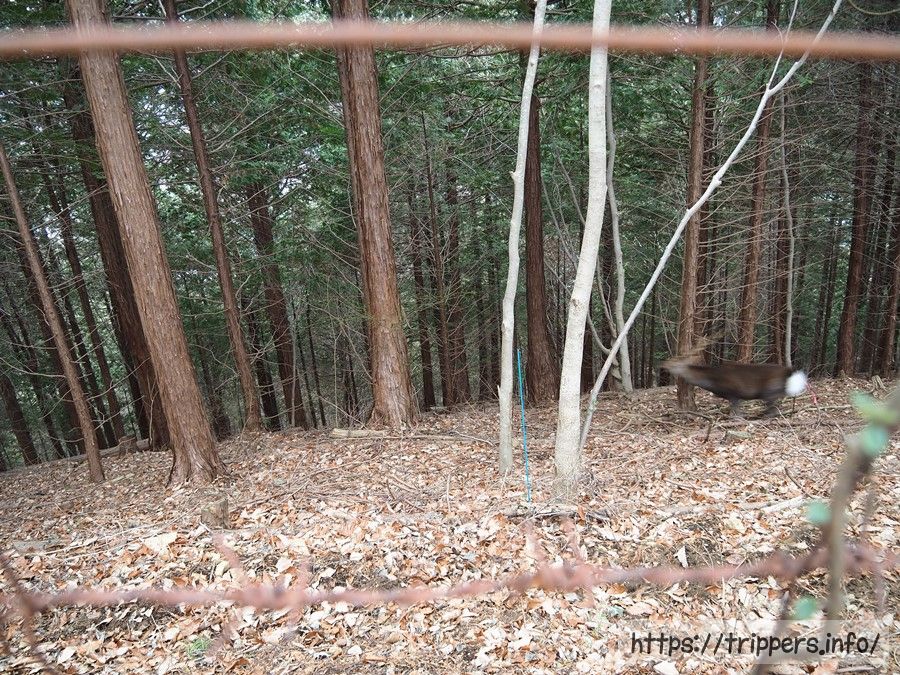 分岐を迷わないように標識を確認しながら権現平へ向かいます。時折、遠くから犬の鳴き声や銃弾の音が何度も聞こえます。飼い主と一緒に散歩でもしているような犬の鳴き声ではなく、野性的な、本能的な声で銃弾に負けないくらいの凄みがありました。でも、狩猟=猟犬の意識がありませんでした。車道が山道から近いし、下界の音が聞こえるくらいの認識でした。