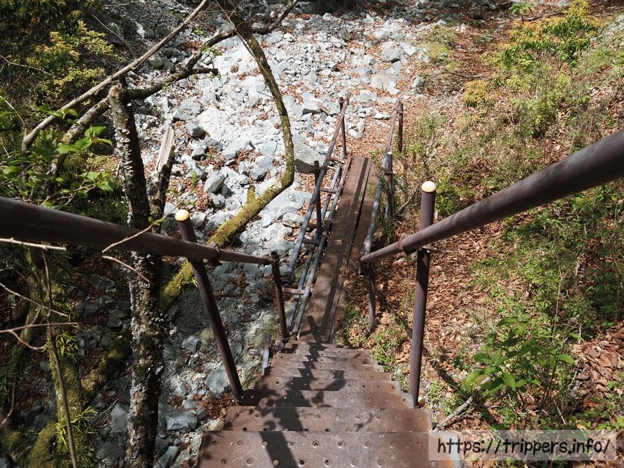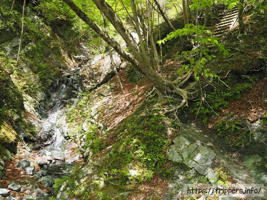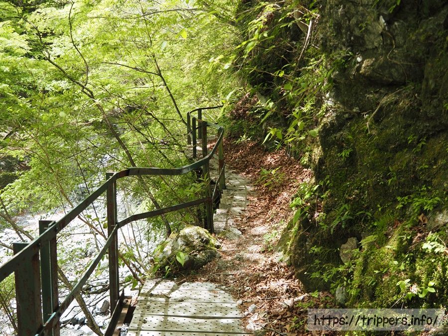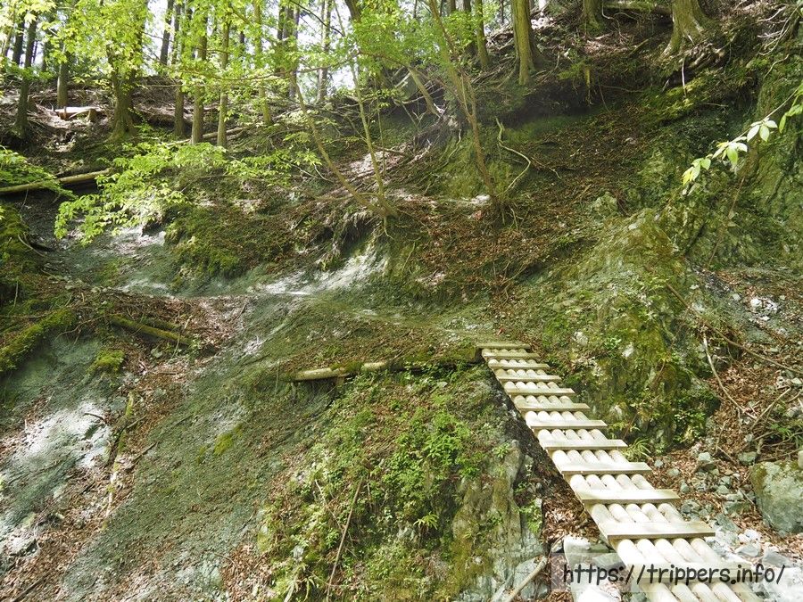 鎖場です。今回歩いたルートは、全体的に難易度はあまり高くありません。雨山峠から雨山橋の間は細い道が多く、落ち葉で滑って足を踏み外し滑落しそうな場所ですが、昔通過した時よりも整備されているようで歩きやすくなっていました。