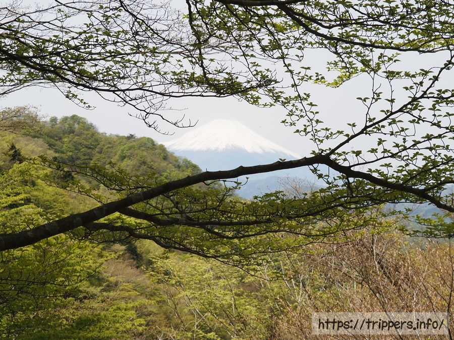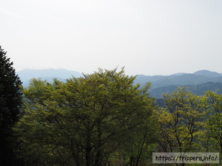 山頂近くの山神峠への尾根を少し降りていくと、丹沢湖と富士山の展望が望めると情報があったのですが、ちょっと分かりませんでした。富士山が薄くなっているので、今日は絶景写真を撮れそうにありません。別の機会の時にでも、探すことにします。