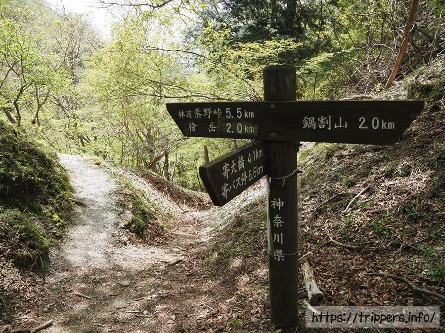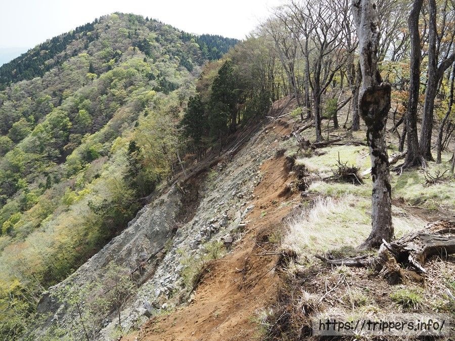 崩落地にやって来ました。雨山峠から秦野峠経由のやどりき大橋までで、すれ違った登山者は1組でした。