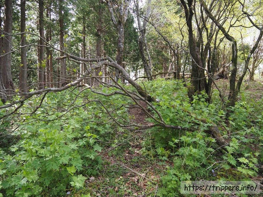 釜場平です。歩き始めてここまでで1時間半かかりました。写真撮影と給水以外は休憩していませんが、急激なアップダウンはなく体力は問題ないです。