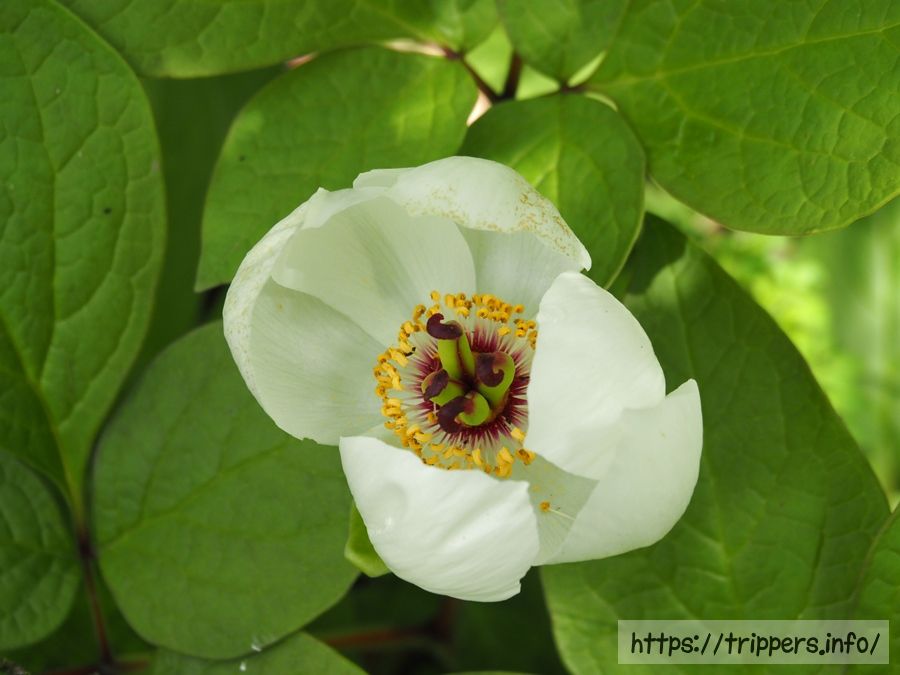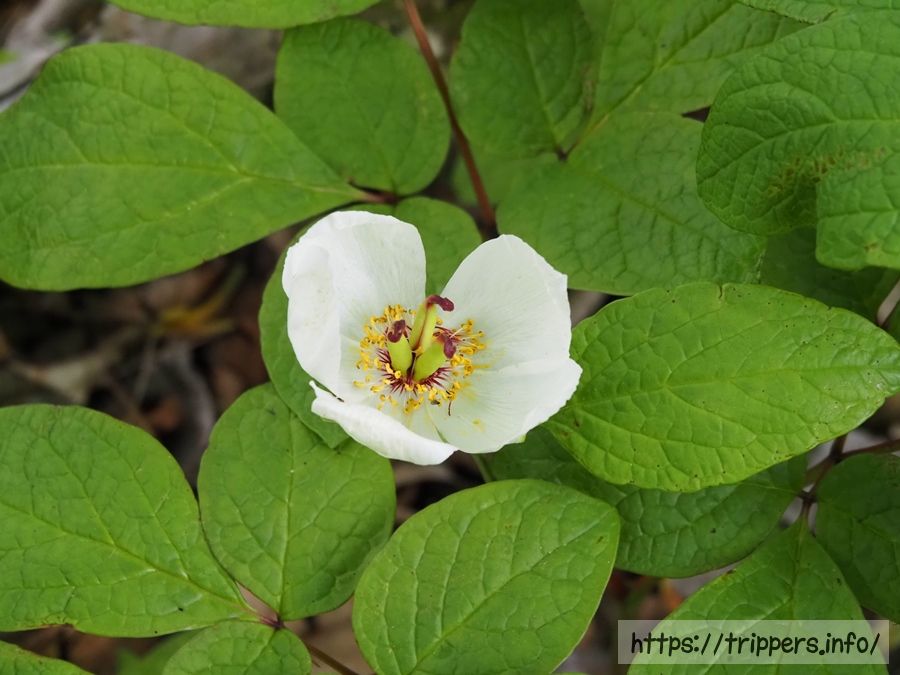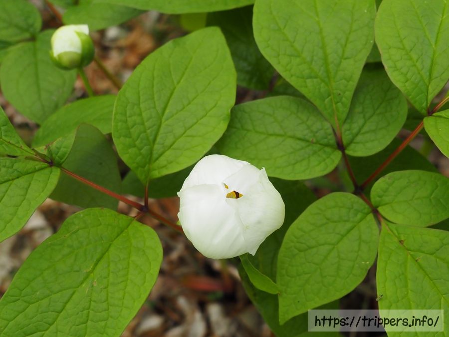 ヤマシャクヤクは姿が大きく、白い花は目立つので咲いていれば離れた場所からでも認識できます。苦労することなく発見し写真撮影していると、同じバス停で下車した方と再会することになりました。目的は同じだったようで、少しの間、一緒に花探しと写真撮影をすることになりました。