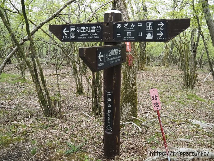 まずは、立山を目指します。情報を色々調べてみると、ヤマシャクヤクはどちらかというと三国山よりも立山の方に咲いているような印象がありました。今回のコースは登山道というよりは、ハイキングコースになっており急なアップダウンはほとんどありません。また富士山の土壌と同じで、かつ足元はふかふかして歩きやすかったです。