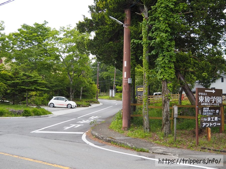 まずは御殿場駅からバスに乗り、山中湖旭日丘バス停で下車します。山中湖沿いの歩道を歩き、専修大学の富士山中湖セミナーハウスが見えたら、別荘地へ続く道へ入ります。