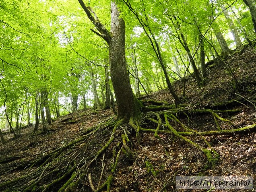 サンクス山中湖の近くから自然林へ入ります。一応、入口は踏み跡がありましたが、それが三国山へ続くためのものかは不明です。