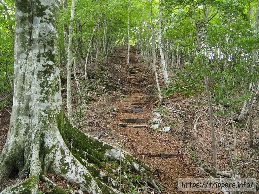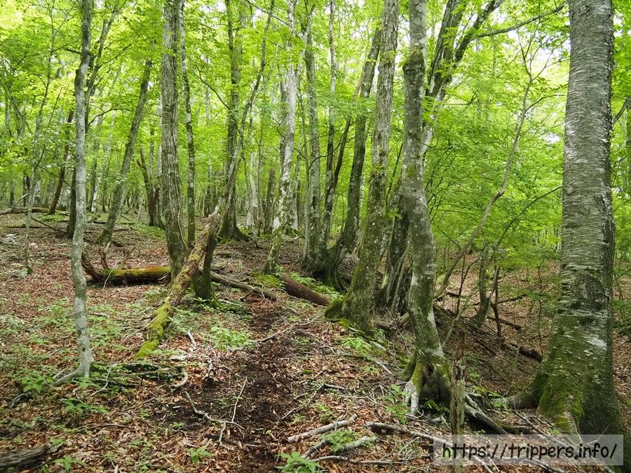 登山テープは最初しか見つけませんでしたが、踏み跡はあったり、なかったりが繰り返します。誰かしら歩いているようですが、誰かと出会うことはありませんでした。