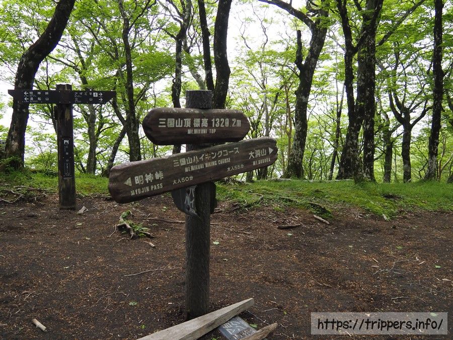山梨県、静岡県、神奈川県の県境に位置する標高1,328mある三国山の山頂へ到着です。女性だけの登山グループが既におり、集合写真の撮影を手伝うことになりました。人が大勢いる観光地へ行っても、山へ行っても、撮影を頼まれる確率が高い気がします。