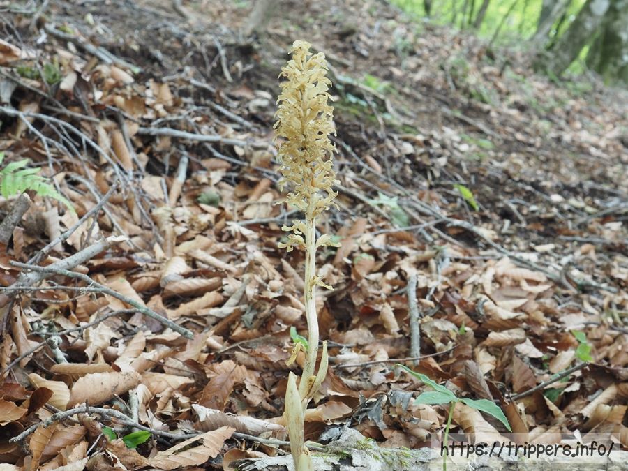 今年は、東丹沢でも花が咲く前のサカネランを見つけており、開花の時期に合わせて丹沢へ再訪したら、その個体は千切られて姿がありませんでした。