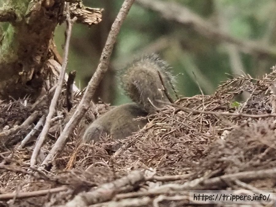 何か動いているものが、そこにおられる。どちら様でござる?とカメラをズームにして存在を確かめると、リスが食事に夢中。5時に夢中!でした。