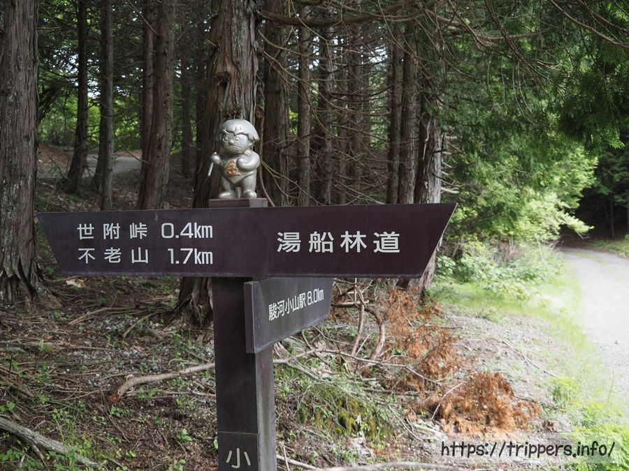 食事を終えたら、トレランモードで世附峠に引き返します。先程通った道なので、植物探しはせずスピードを出したら、標準タイム40分かかるところを、13分くらいで済みました。駿河小山駅へ向けて下山します。