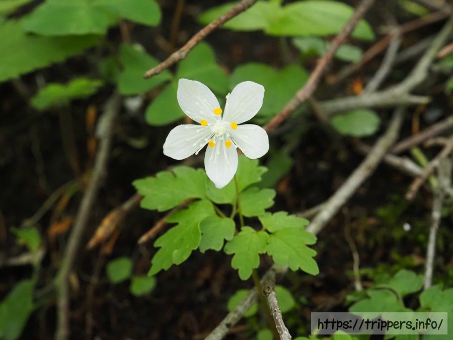 他にもハコネシロカネソウを見つけています。ずっとシロカネソウ(ツルシロカネソウ)だと思っていたのですが、葉にしわがないことや、葉の先が細く尖らないことがシロカネソウと異なります。