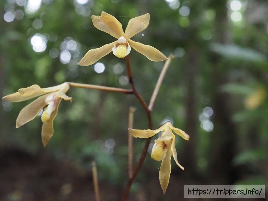 先日の雨の影響なのか分かりませんが、花が幾つか落ちています。腐生植物であるムヨウランは、地域によって異なる種が多いようです。現時点では、他にトサノクロムヨウランしか観たことなかったので、次第に増やしてみたいものです。