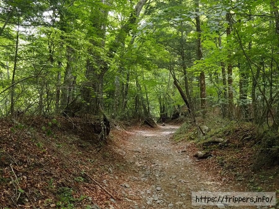 天空の草原とでも言えそうな景色はこれで終わりで、樹林帯に入ってバス停まで下山します。三ッ峠山からの下山ルートは幾つかありますが一番短時間で下山できる母ノ白滝ルートを歩きます。
