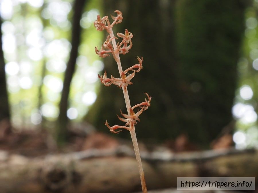 腐生植物好きの私にとっては、数ある植物の中でヒメムヨウランが今日一番のお目当てです。三ッ峠山だけでなく富士山南麓にも自生しています。ラン科サカネラン属ですが、同属の腐生植物であるサカネランと比べると、総状花序であることくらいしか属の共通点が思い浮かびませんでした。